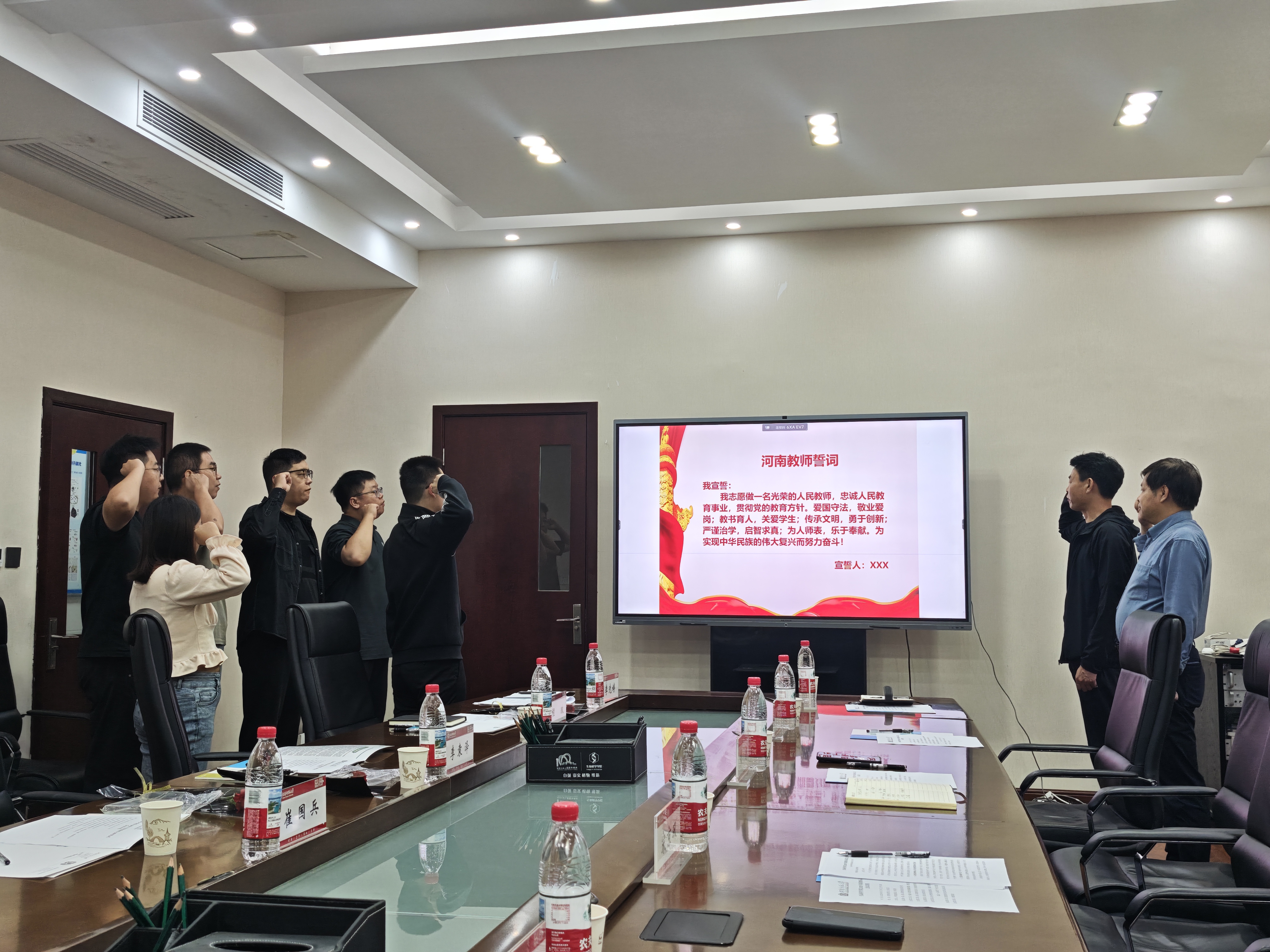 党委书记宋京双在总结讲话中,结合“九一八”这一特殊历史时刻,勉励新教师勿忘国耻、砥砺奋进,将自强不息的民族精神融入教学科研实践。他强调,新教师要深刻理解并自觉践行教育家精神,展现新时代教师的使命与担当;要以政治定力、扎实的学术功力和高尚的人格魅力涵养师者风范,努力成为新时代的“大先生”;要积极融入国家战略和学院发展新格局,科学规划职业发展路径,在立德树人的实践中实现新作为、新贡献。与会领导结合自己分管工作与新教师进行了深入交流,为新教师答疑解惑,现场气氛热烈而融洽。新入职教师现场还进行了宣誓仪式。