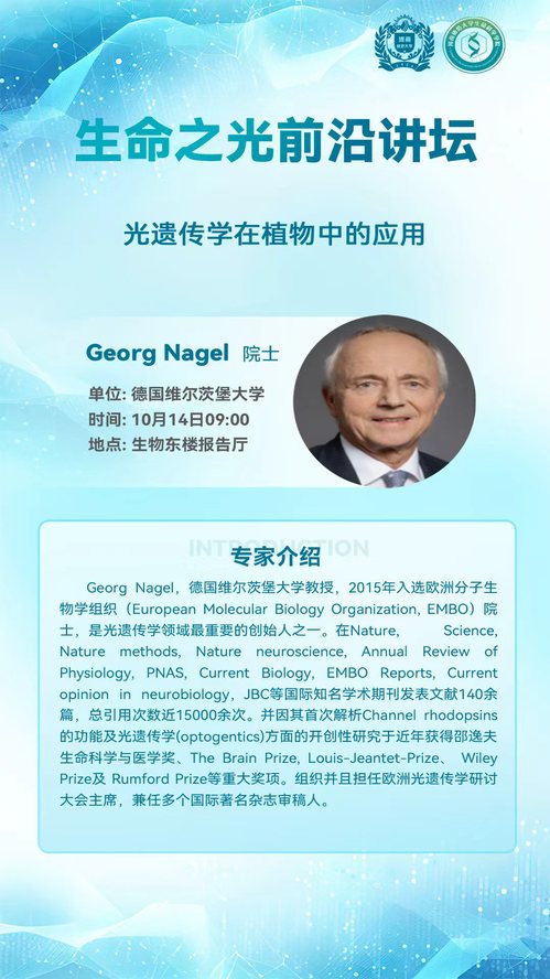 学术预告——德国维尔茨堡大学Georg Nagel院士应邀来我院讲学