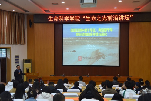 10月16日上午,应生命科学学院邀请,中国科学院成都生物研究所郭宪光研究员做客“生命之光”前沿讲坛,作题为“征服亚洲中部干旱区:典型耐干旱爬行动物的多样性与进化”的学术报告,学院师生百余人参加。