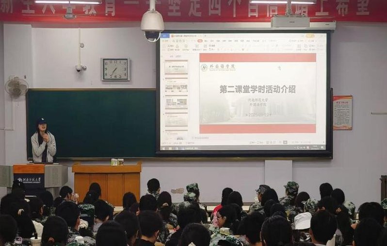 为帮助2025级新生深入了解第二课堂育人体系,科学规划大学生活。9月29日,河南师范大学外国语学院于新五五四教室举办新生第二课堂学时活动介绍会。2025级辅导员钱江红、学院团委学生会负责人以及全体新生参加本次活动。