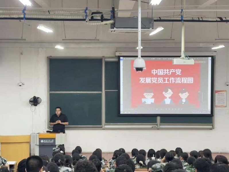 活动最后,尹康详细讲解了入党流程,同时鼓励新生以党员标准严格要求自己,在军训中锤炼意志、在学习中提升素养,争取早日加入光荣的中国共产党。