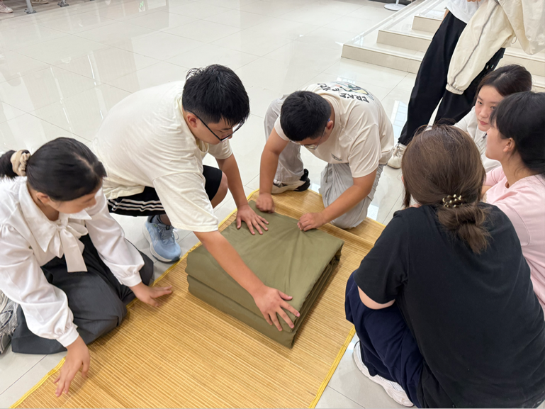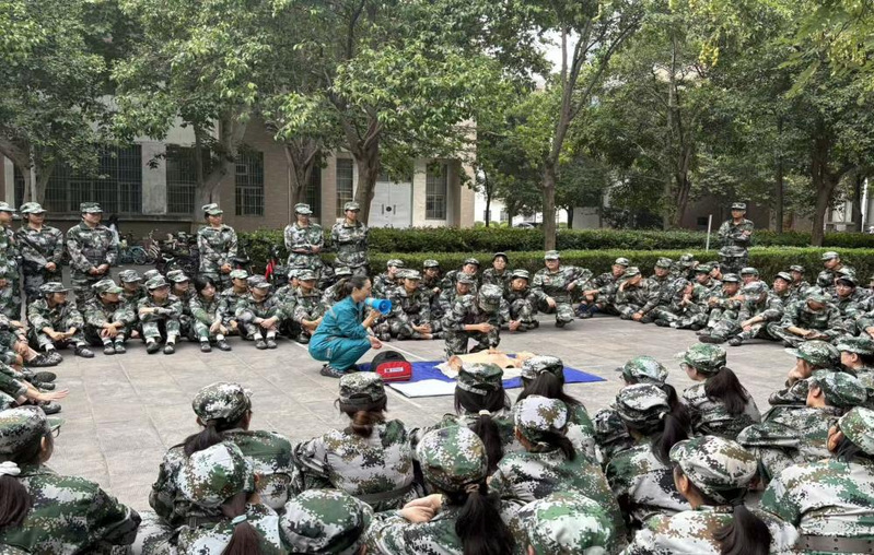 为确保军训工作顺利进行,学院精心设立军训爱心服务点,备齐饮用水、应急医疗用品,召集党员、入党积极分子等学生骨干,组建志愿服务队轮班值守,实时关注新生身心状态并及时提供帮助。同时利用训练间隙组织“军歌传唱”“才艺表演”等文体活动,在军训紧张严肃的氛围下,帮助新生更好地适应大学生活。