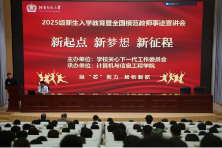 为引导新生尽快适应大学环境,确立人生目标,开启精彩篇章,9月26日晚,计算机与信息工程学院成功举办以“新起点 新梦想 新征程”为主题的新生入学教育暨全国模范教师事迹宣讲会。本次宣讲会主会场设在求真楼五楼东报告厅,分会场设在五楼西报告厅,全国模范教师薛占熬教授担任主讲,宣讲会由学院党委副书记陈清利主持,学校关心下一代工作委员会副主任赵长新、苏战旗、2025级专兼职辅导员和全体新生共同参会。