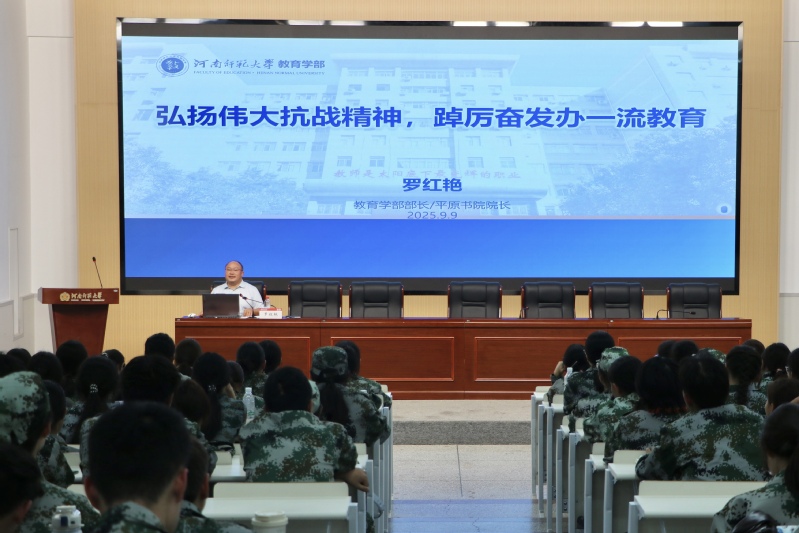 罗红艳首先代表教育学部党政领导和全体师生向2025级新生的到来表示热烈的欢迎。他以《踔厉奋发担使命以史为鉴启新程》为题,回顾教育学部自1951年以来的发展历程与办学成就,并结合中国人民抗日战争暨世界反法西斯战争胜利80周年,向新生提出三点殷切希望:一是铭记历史、坚定信念,做民族精神的传承者,将个人理想融入强国建设与民族复兴的伟大事业;二是练就本领、勇于创新,做青春梦想的实践者,充分利用师大与学部的优质资源,追求卓越,脚踏实地;三是厚植情怀、涵养师德,做立德树人的践行者,坚守“精育良才、教育报国”的初心,秉持终身学习理念,勇攀学术高峰。