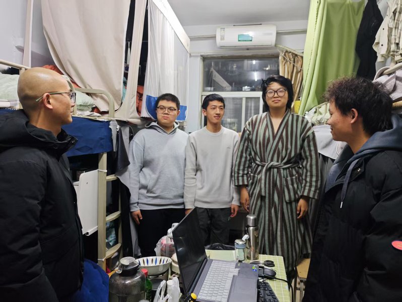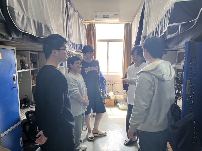 宁晨阳围绕学生们近期所见、所闻、所思、所想展开亲切交谈。他立足平安校园建设,叮嘱同学们遵守宿舍管理规定,特别要注意用电安全,保持宿舍日常干净整洁,号召大家积极营造整洁、文明、安全、和谐的宿舍环境。同时,他指出寝室不仅是休憩生活的场所,也有助于培养良好学风,鼓励同学们化“同伴压力”为共同进步的动力,培育优良寝室学风,发展特色寝室文化,争创“学霸宿舍”、“文明宿舍”。
