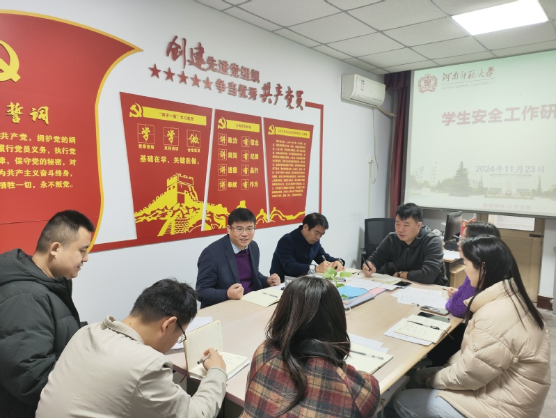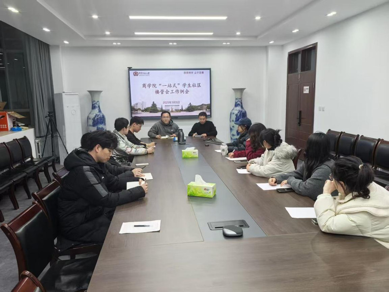 孙晓汇报了上学期西寓9号楼“一站式”学生社区的建设情况,分析了在西寓9号楼住宿学生的学院分布和生活情况,对社区学生返校后的思想动态、学习状态、生活状况和成长困惑等方面进行了分析研判。他表示,要做好值班值守、解决好学生急难愁盼问题、处理好可能出现的突发事件;要进一步加强学生社区教育管理服务工作,努力将社区打造成一站式集成、网格化管理、精细化教育、信息化支撑的综合管理服务平台;要以“五位一体”建设模式为导向,重点在思想引领、宿舍安全、文化建设、心理健康和特色活动等五个维度开展工作。