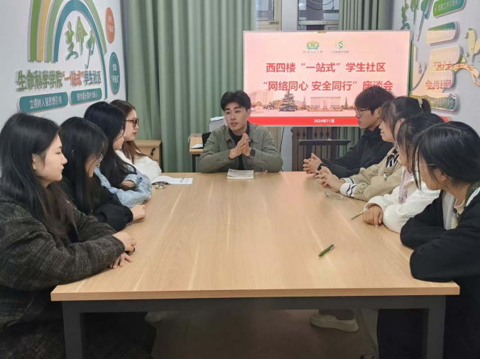 为进一步推进“一站式”学生社区建设,明晰任务,11月2日上午,生命科学学院在生物西楼206会议室召开“一站式”学生社区工作推进会,学院相关负责人,专兼职辅导员及西寓4号楼各楼层长、负责人参加会议。会议由生命科学学院团委负责人马静潇主持。