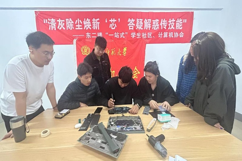为了落实立德树人根本任务,坚持以学生成长成才为中心,结合“一站式”学生社区建设工作方案,聚焦社区学生成长需求,压实“下沉式”管理育人,东二“一站式”学生社区于4月13日上午联合计算机协会开展“清灰除尘焕新‘芯’ 答疑解惑传技能”义务维修活动。
