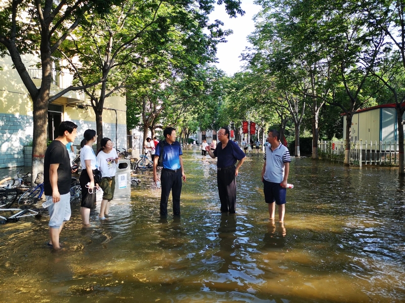 学院领导班子科学研判、超前谋划,做好预案、提前部署,身先士卒、靠前指挥,采取科学得力措施应对灾情。防汛救灾青年突击队第一时间为留校学生采购生活物资,蹚水冒雨送到学生宿舍,精准对接,有序发放,确保留校学生安全健康。组织党员教职工轮流值班、监测预警、巡查河堤,做到责任到位、巡查到位、措施到位,及时化解各类风险隐患。
