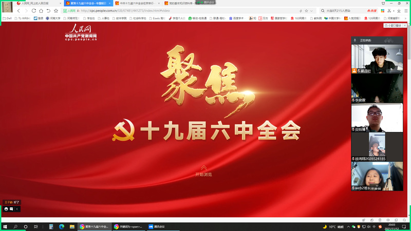 为深入学习贯彻党的十九届六中全会精神,11月12日晚,软件学院本科生第四党支部以线上形式召开“学习党的十九届六中全会精神”会议,研究学习全会精神和公报。党支部书记张清宇担任主讲,支部全体党员与入党积极分子参加会议。