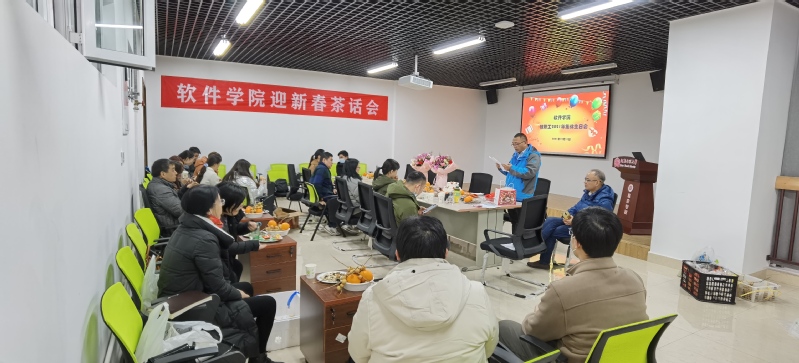 12月31日下午,软件学院工会在实训楼413会议室举办2021年11-12月教职工集体生日会暨2022年迎新春茶话会。学院领导班子成员与全体教职工欢聚一堂,共庆生日,迎接新年。会议由软件学院党总支副书记苗山根主持。