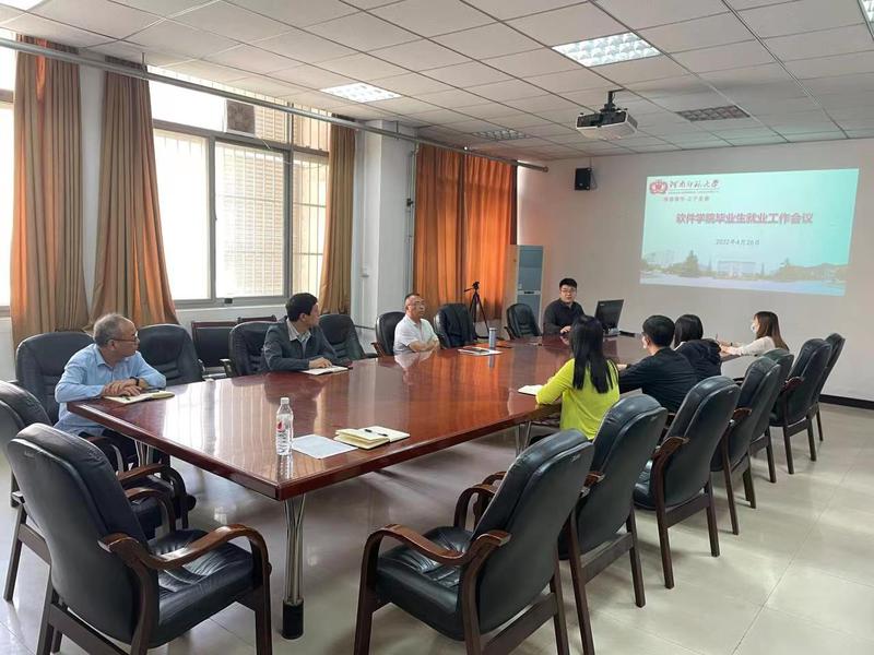 为贯彻落实学校工作部署和相关要求,稳步推动2022届毕业生就业工作,4月26日,软件学院在计科楼103会议室召开毕业生就业工作会,学院相关负责人和各年级辅导员参加此次会议。