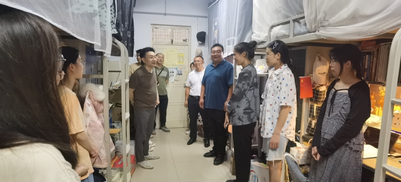 烈日炎炎,正值酷暑,为做好常态化疫情防控背景下暑期留校学生关心关怀和教育管理工作,7月9日下午,软件学院党委书记马新峰、副院长王川带领全体辅导员,深入宿舍走访暑期留校考研学生,并为学生送上牛奶等慰问品。