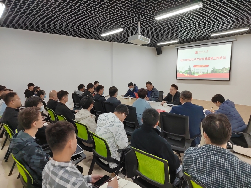 为深化产教融合,提升人才培养质量,10月11日下午,软件学院在实训楼413会议室召开了2022年度外聘教师工作会议。学院领导班子成员、相关工作负责老师及25名外聘教师参加了会议,会议由学院副院长袁培燕主持。