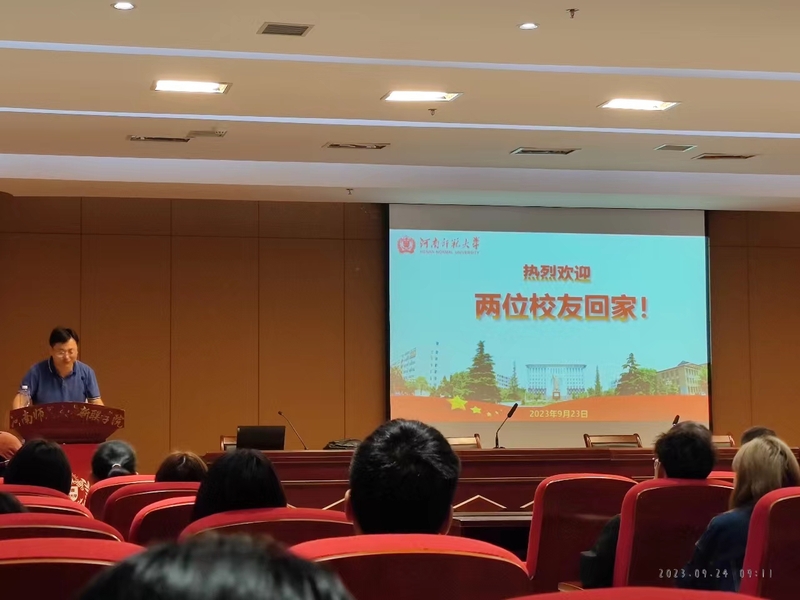 两位校友首先表达了自己对母校、对恩师的深切情怀,祝贺母校风雨兼程迎来了百年华诞。2009级校友徐文涛现就职于国家超级计算深圳中心,参与世界运行速度最快的超级计算机的研制和应用管理工作,他结合自身和身边其他校友的学习、工作经历,鼓励同学们要以学业为重,利用在校时间多参与与专业相关的竞赛,以赛促学,提升自身的综合能力,同时介绍了考研、保研以及公务员考试的一些经验和看法,从就业形势上分析了软件专业的前景,给同学们指明了学习的方向。2014级校友王詹杰,河南智泉研学教育咨询有限公司总经理,深情回忆了在母校学习的美好时光,在母校读书期间自己最大的收获就是师生情。师大淳厚的校训和老师的谆谆教导使得他在创业成功之后不忘回报母校。看到母校各项事业发展蒸蒸日上,为母校祝福的同时也尽自己一份绵薄之力助力母校发展,积极与母校搭建平台,为学弟学妹们提供更优质的教育资源。