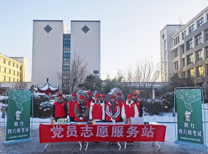 12月16日,软件学院积极组织学生党员志愿者在平原湖校区图书馆前广场开展主题为“党员齐上阵,志愿暖人心”的大学生英语四六级考试党员志愿服务活动。