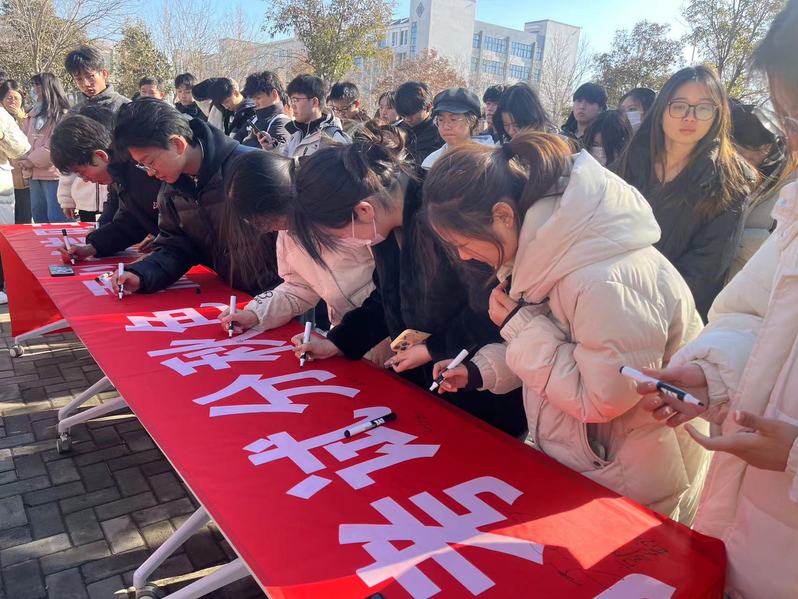 在期末考试即将来临之际,为树立良好考风、考纪,净化考试环境,进一步深化社会主义核心价值观中的诚信教育,培养学生的诚信品德,营造风清气正、诚实守信的考试氛围。1月3日中午,软件学院在平原湖校区开展 “学以载道,诚至金开”诚信考试签名活动。