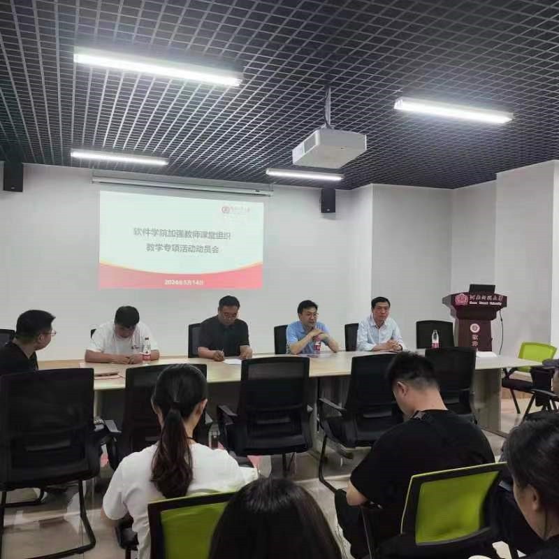 为提高人才培养质量,构建自觉、自省、自律、自查、自纠的本科教育教学质量文化,5月14日下午,软件学院在实训楼413会议室召开加强教师课堂组织教学专项活动动员会。学院领导班子和全体教职工参加,会议由副院长袁培燕主持。