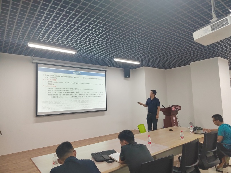 报告会上,张晓岩教授围绕不相交最短路算法的研究展开。张教授首先介绍了相关研究背景及主要研究的两个问题。其次,详细讲解了K=2时算法的核心思想。受到求解最大流问题的增广路径算法的启发,其使用一种改进版的剩余图,但仍然遵循增广路径算法的框架求解其研究的两个问题,并展示了算法的实验结果,其运行时间显著低于RPLSP算法。最后,张教授对该研究未来可进行的工作做了介绍并与师生进行了互动。