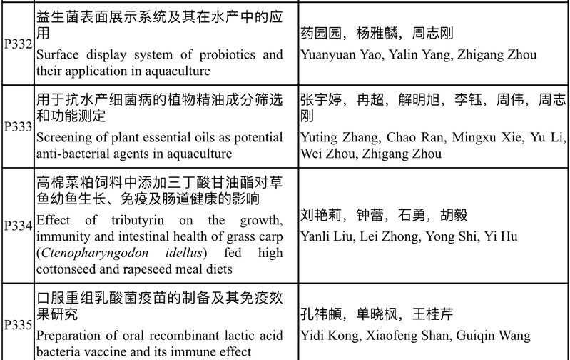 第十二届世界华人鱼虾营养学术研讨会墙报目录