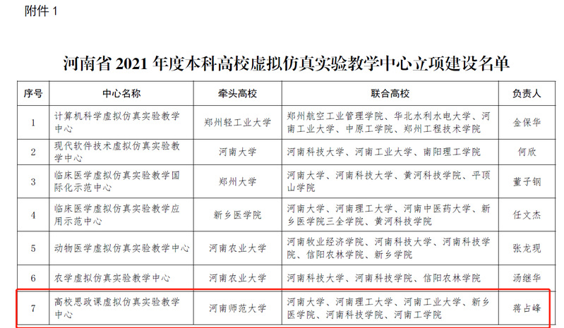 2021年度河南省本科高校虚拟仿真实验教学中心 ~ 蒋占峰