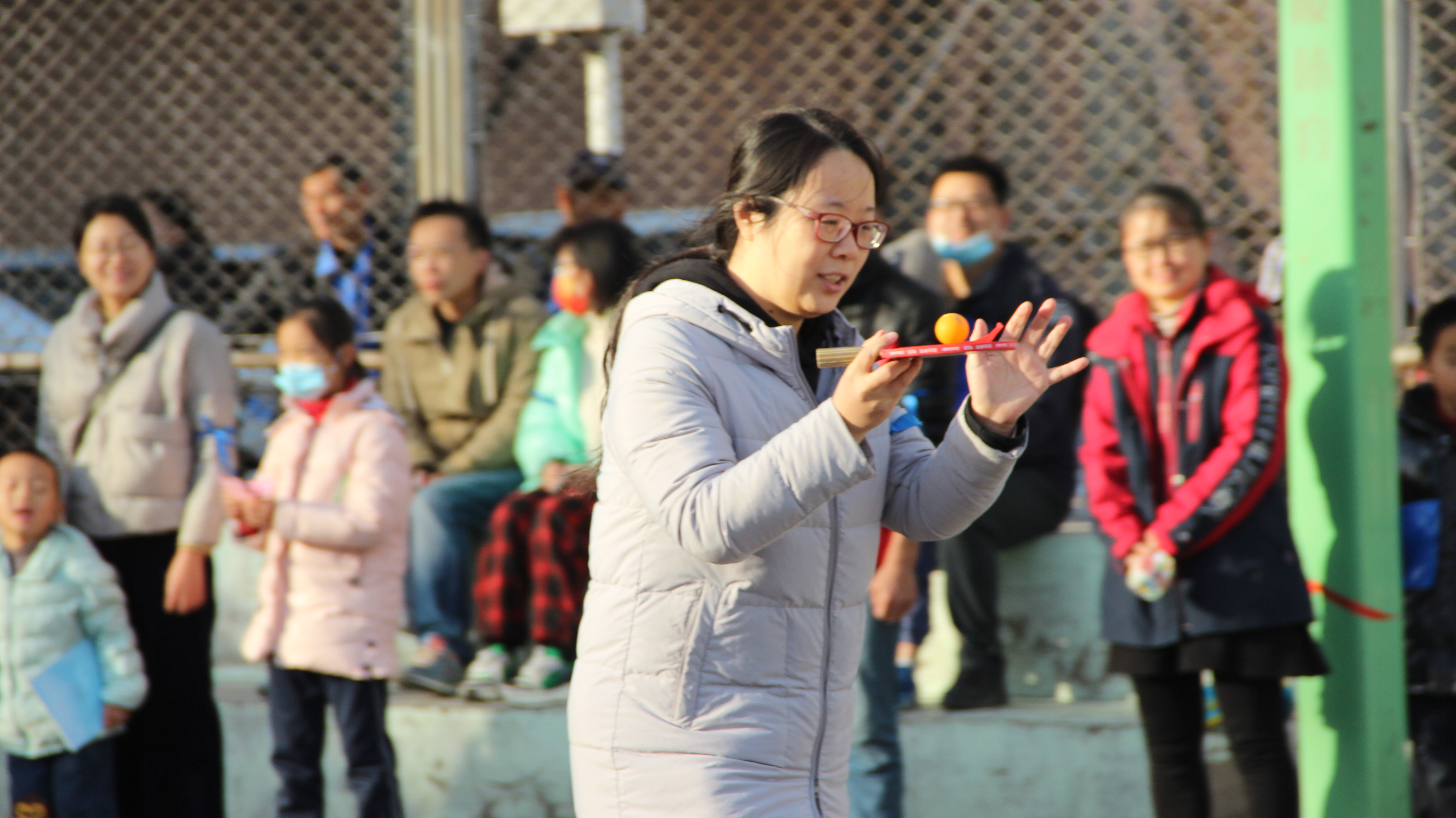 本次趣味运动会由“背靠背运球接力赛”、“乒乓球托球跑”、“团队合作拿瓶子”、“扔沙包”四个部分组成。赛前,教师们早早到达操场热身,仔细研究每项比赛规则,并反复练习。随后,比赛正式开始,教职工们分工合作,互帮互助,秉承着“友谊第一,比赛第二”的原则,赛出风采、赛出水平。教职工们在运动中卸掉了生活和工作的压力,散发着青春和活力;在轻松愉悦又不乏激烈刺激的氛围中,身体得到了锻炼、心情得到了放松。现场氛围一片愉快、欢乐、和谐,比赛在加油声、呐喊声和欢呼声中圆满结束。