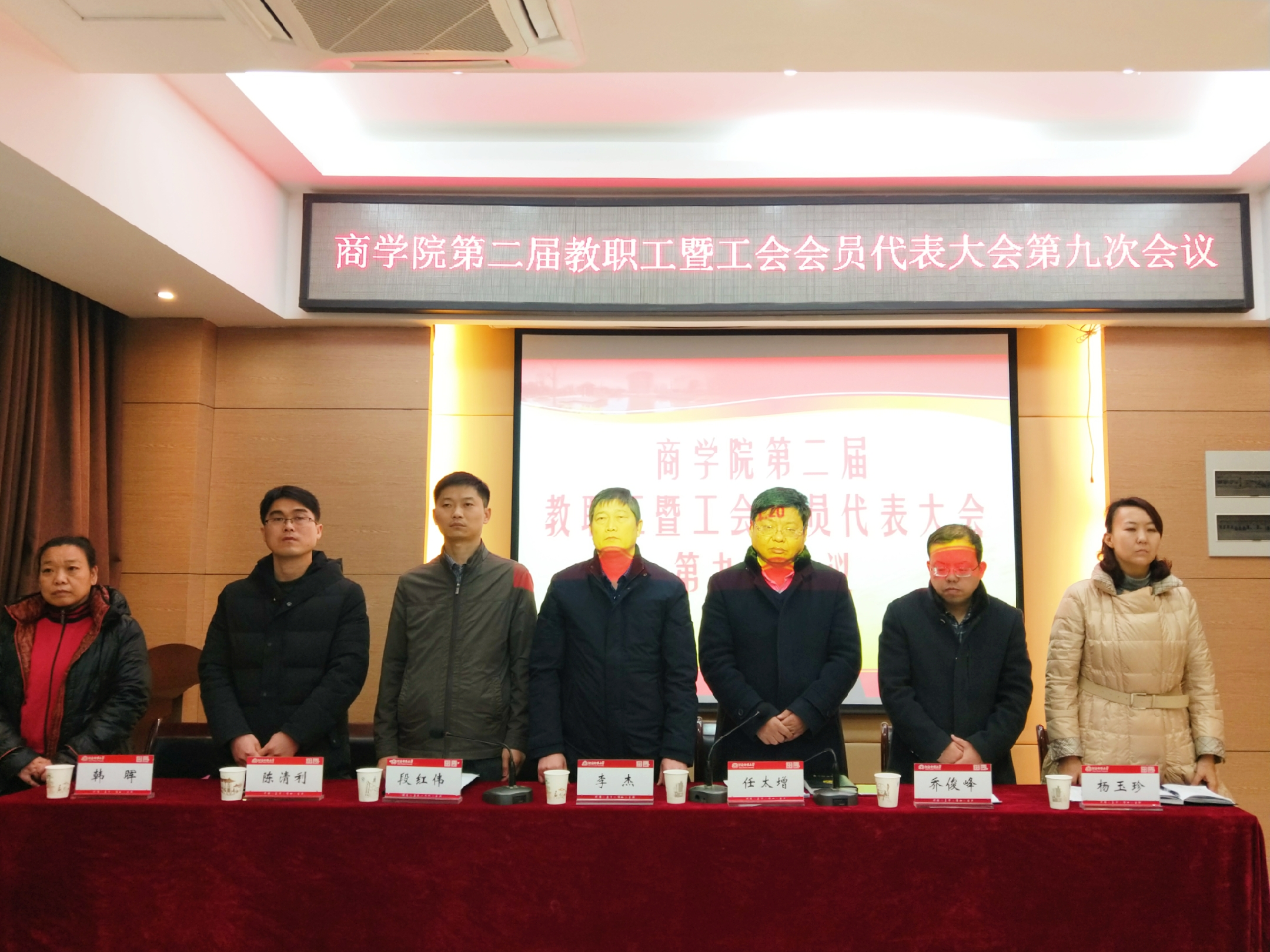 1月20日下午,商学院于119会议室召开了教职工代表大会暨第二次全体会员大会第九次会议。商学院党委书记李杰、院长任太增、工会主席段红伟、副院长乔俊峰、陈清利、杨玉珍、工会副主席韩晖以及全体教职工参加了此次会议。大会由商学院工会主席段红伟主持。