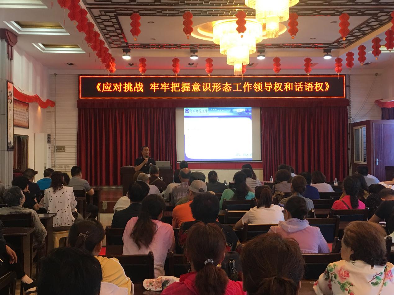 其后,河南师范大学党委组织部正处级组织员丁西川、牧野区委副书记尚增轩共同为荣校路街道成立“河南师范大学马克思主义学院党建实践与创新基地”揭牌。揭牌仪式结束后,蒋占峰为各社区党员干部做了题为《应对挑战 牢牢把握意识形态工作领导权和话语权》的党课。在接下来的工作中,河南师范大学将与荣校路办事处共同努力,将党建创新基地打造为党建工作经验交流的平台。