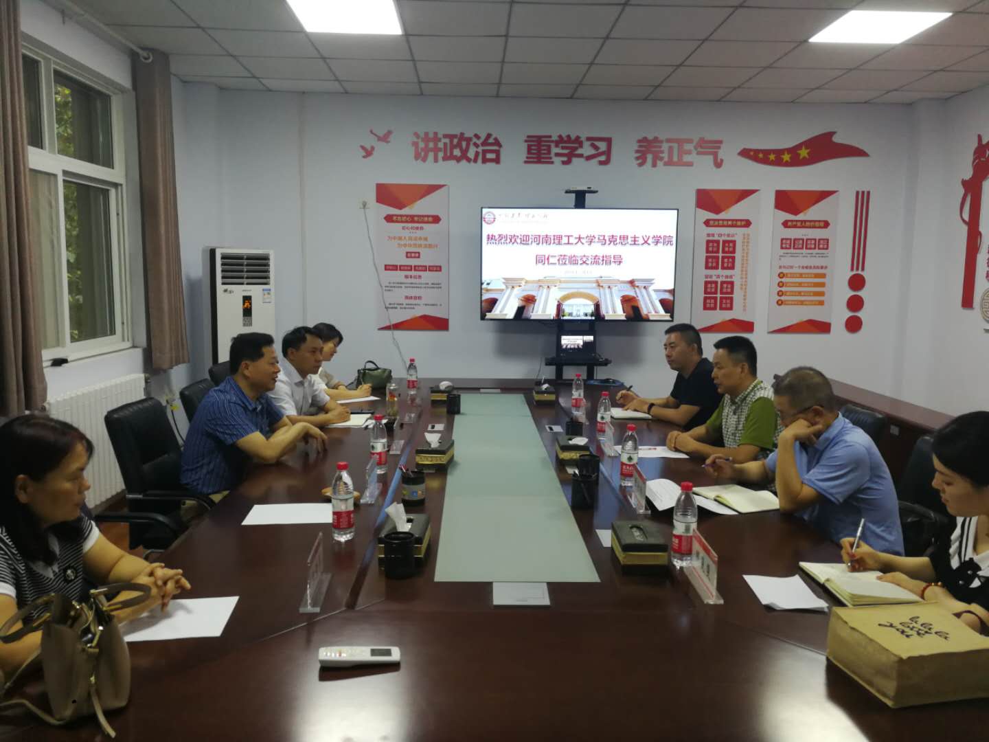 2019年7月4日上午,河南理工大学马克思主义学院邵发军副院长一行来我院就学科教学(思政)专业培养工作进行交流。我院马福运院长、李翔副院长、王素萍老师、刘巧凤老师和冯思淇老师参加了交流活动。