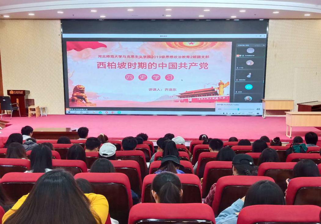 为深入贯彻习近平总书记关于“学习党史、新中国史、改革开放史、社会主义发展史”的重要指示精神,强化政治引领,厚植爱国主义情怀,11月7日晚,马克思主义学院思想政治教育一班在求是东楼与河北师范大学马克思主义学院思想政治教育二班联合举办“学四史、守初心、担使命”主题活动。