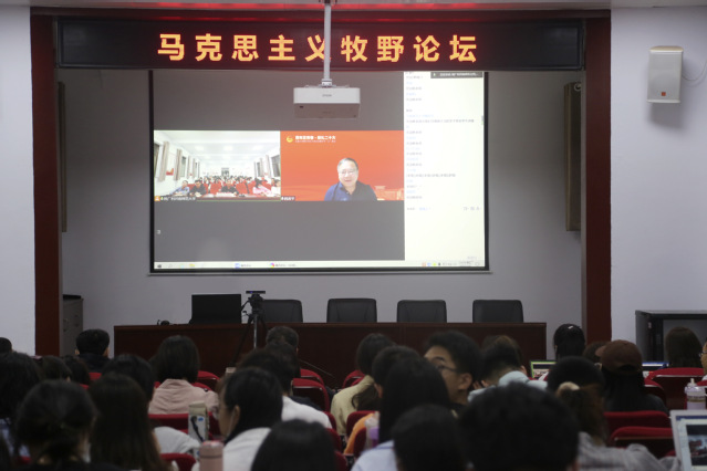 5月6日晚,吉林大学党委副书记、中央马克思主义理论研究和建设工程首席专家、国务院学位委员会第七届第八学科评议组成员、博士生导师韩喜平教授应邀为马克思主义学院师生作“建设中国自主知识体系的哲学社会科学”的学术报告,报告采取线上线下相结合的方式进行,主会场设在平原楼108会议室。马克思主义学院院长蒋占峰、副院长余保刚、学院教师代表和全体研究生、本科生参加了此次报告会。此次报告也是河南师范大学马克思主义牧野论坛第60场报告。
