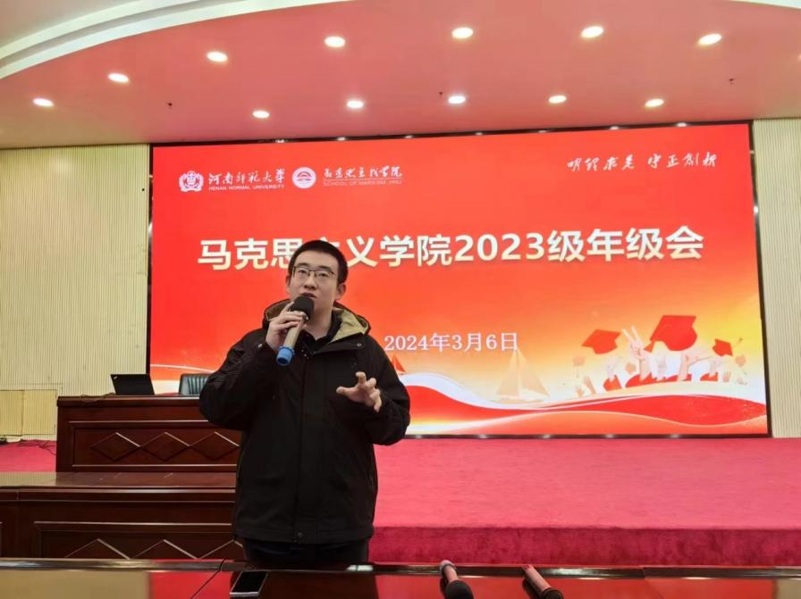 为引导同学们尽快回归校园生活,调整学习状态,做好新学期规划准备。3月6日,马克思主义学院于东区思政平台召开2023级本科生年级大会,2023级专兼职辅导员及全体23级本科生参加此次会议。