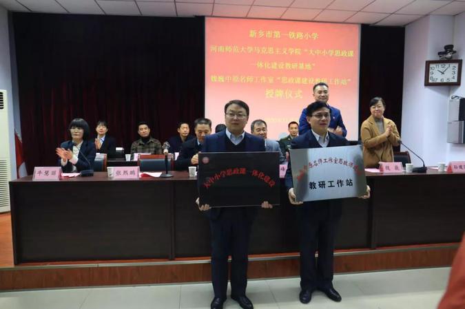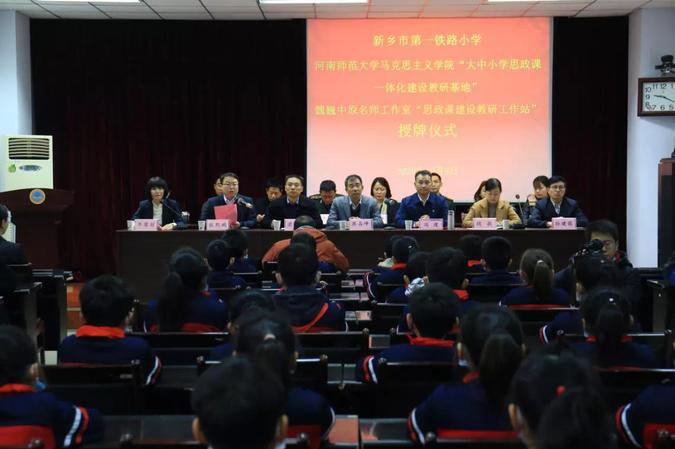 2020年12月9日,河南师范大学马克思主义学院“大中小学思政课一体化建设教研基地”、魏巍中原名师工作室“思政课建设教研工作站”授牌仪式在新乡市第一铁路小学举行,院长蒋占峰、新乡市教育局副局长冯建、河南省中原名师魏巍及卫滨区文明办、铁一小共建部队等单位代表人员出席。