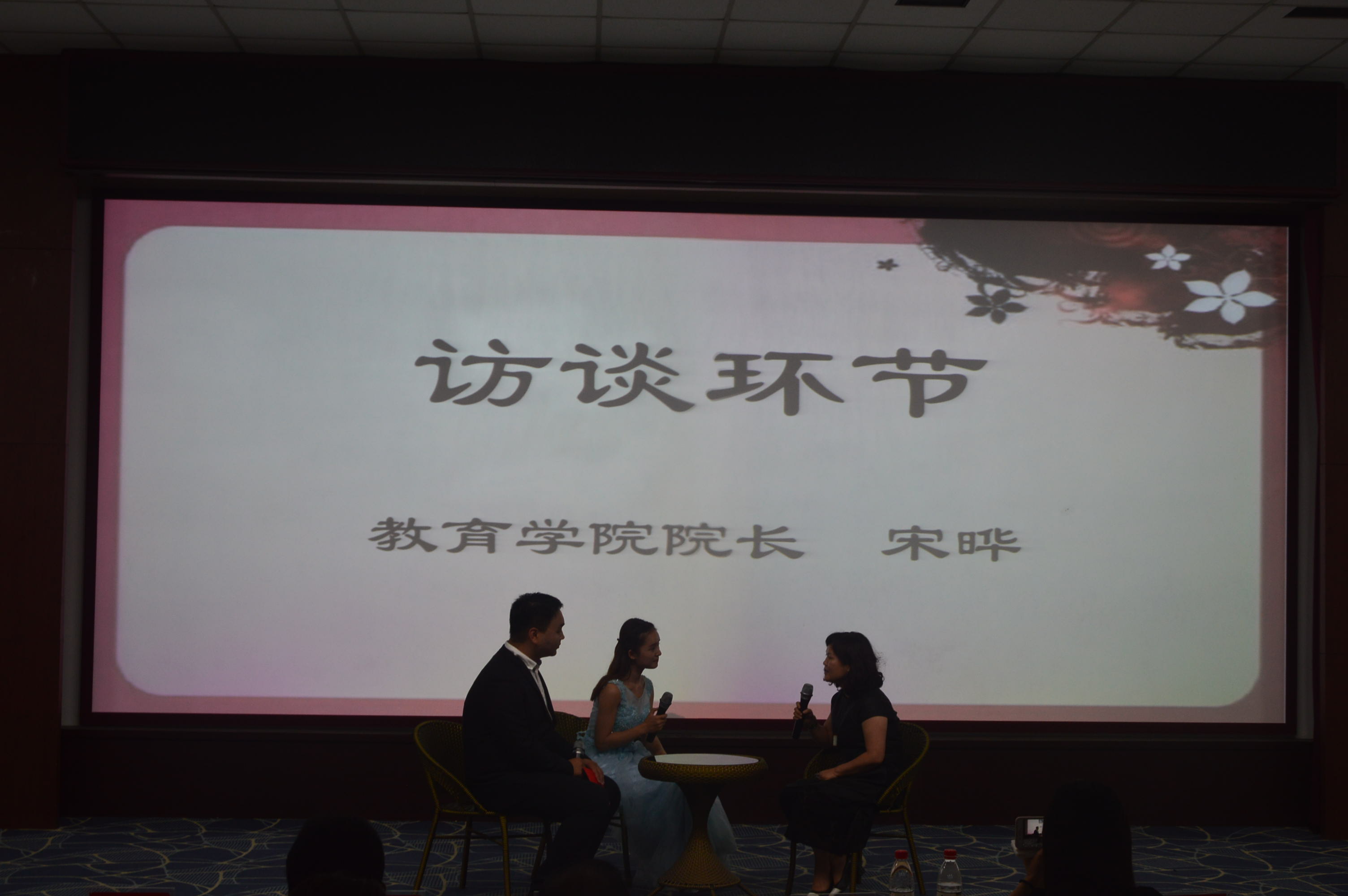 活动在成果展示开场视频中拉开帷幕。视频介绍了教育文化节的背景,同时也对各个专业的特色进行了详细介绍。随后,伴随着一阵阵的掌声,儿童舞蹈、心理剧、访谈、话剧等10个精彩节目为观众呈现了丰富的视听盛宴,并且更加生动地展示了不同专业的特色。接下来的访谈环节也是本次汇演的一大亮点,当主持人问到教育文化节的育人功能时,李帅军书记重点突出立德树人,素质教育,并将教育文化节作为我院的一个特色活动,致力于“双一流”建设,促进我院由大院向强院迈进!随后又对宋晔院长进行有关读书的专题访谈,院长表示,作为新时代青年,要不断提升自身素质,正所谓“书中自有黄金屋,书中自有颜如玉”,通过读书能够开拓眼界,陶冶情操,同时还为同学们推荐了一百本读物,同学们认真聆听并纷纷做笔记,宋院长的访谈让在场观众受益匪浅。