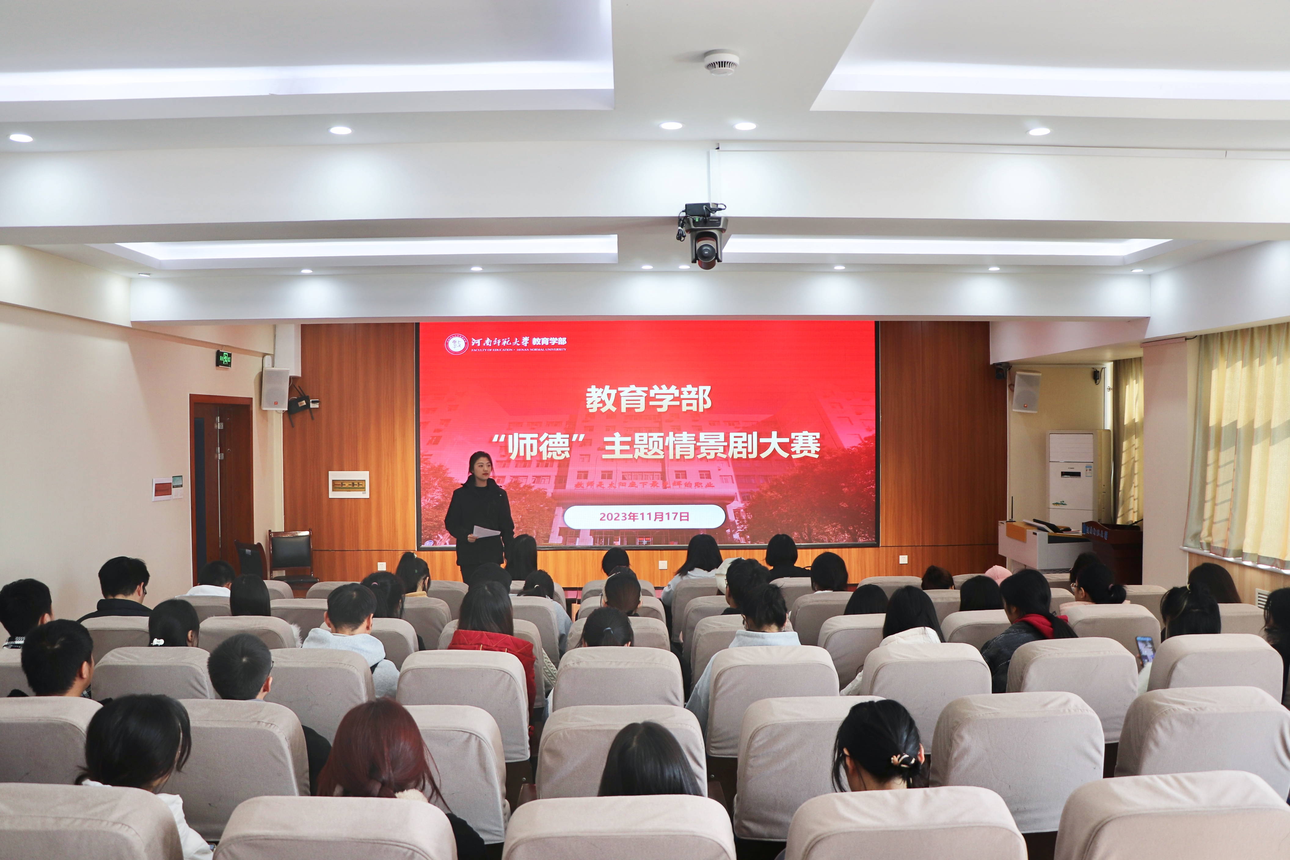 为丰富学生校园文化生活,增进师范生师德认同,提升学生专业素养,11月17日,教育学部在田家炳教育书院607教室举办“因为有你,精彩‘剧’现”师德主题情景剧大赛,学部团委负责人崔新媛、学生会主席团成员及各年级学生80余人参与此次活动。