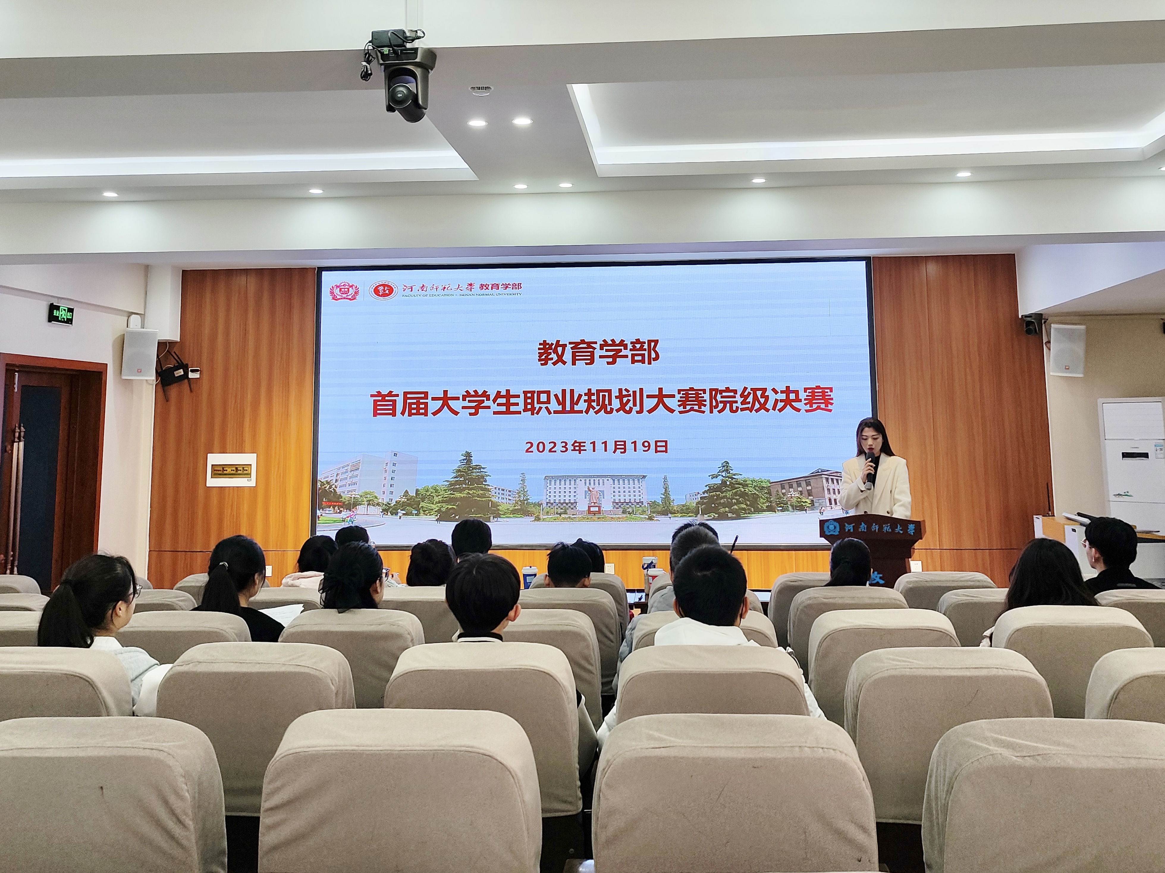 为增强大学生职业生涯规划意识,提高大学生创新创业实践能力,选拔优秀选手参加校级比赛,教育学部于11月19日在田家炳教育书院819会议室举办大学生职业生涯规划大赛。河南师范大学招生就业处副处长宁敏、生命科学学院团委负责人马静潇、2022年大学生职业生涯规划大赛校赛特等奖获得者于佳琪担任此次比赛评委,比赛由学部团委负责人崔新媛主持。
