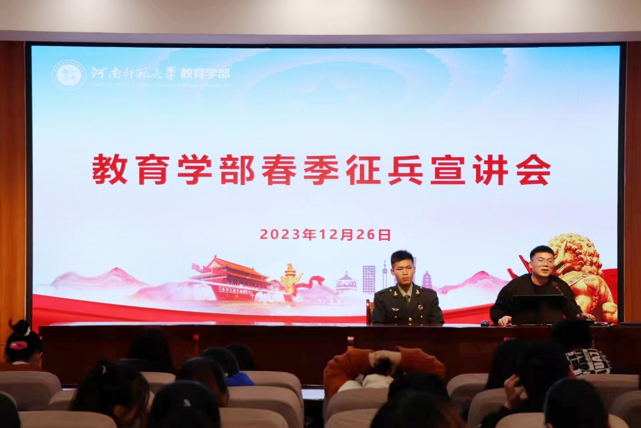 “国无防不立,民无军不安。”为深入贯彻落实习近平强军思想,进一步落实国家征兵工作相关要求,帮助大学生全面了解征兵政策,激发大学生应征入伍热情,教育学部于12月26日在田家炳教育书院819报告厅举行了2024年春季征兵宣讲会。教育学部征兵工作专员尹晓炯、学部优秀退役大学生士兵李滔及学部意向参军学生90余人参加会议。会议由尹晓炯主持。