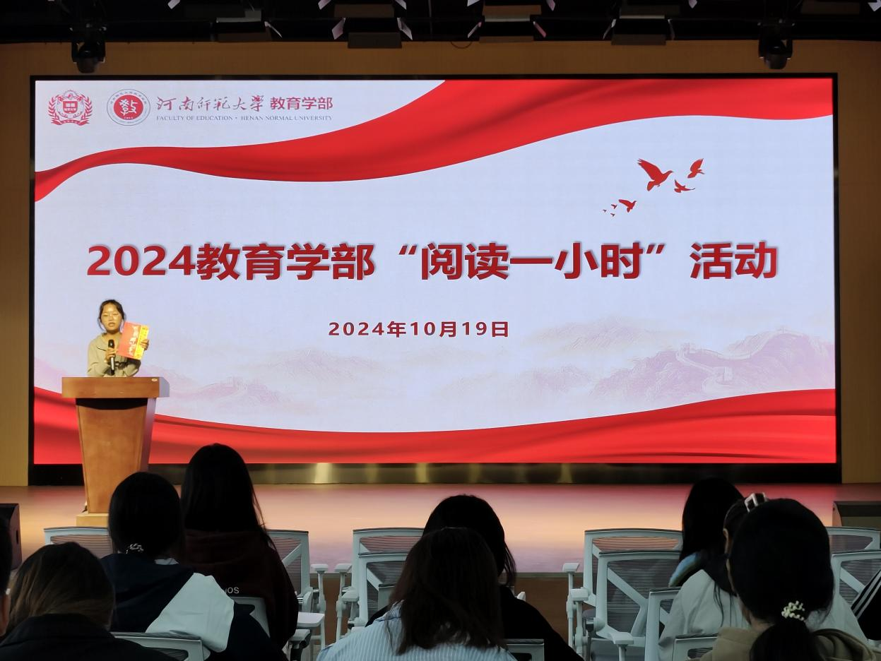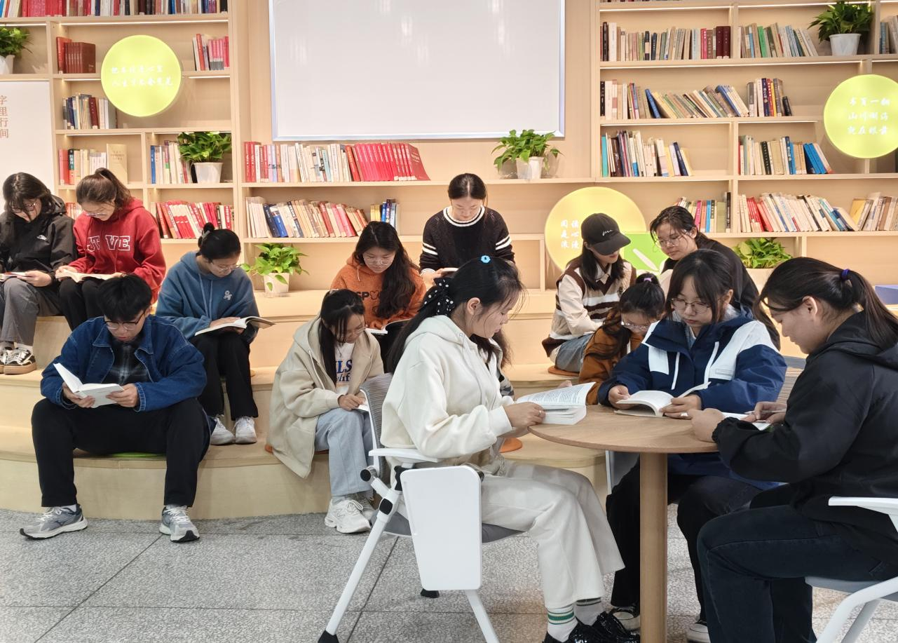 此次活动以经典诵读、阅读分享、自主阅读等多种形式展开,活动现场气氛热烈。在经典诵读环节,2022级教育学专业张真平诵读了柏拉图《理想国》中的经典段落,使同学们了解柏拉图心中的正义与理想国家,明白教育在培养理想公民中的重要性。在阅读分享环节,2023级心理学专业史雅鑫向大家推荐历史类佳作《明朝那些事儿》,她表示该书叙事生动,以独特的视角展现历史规律,思悟历史的同时也可从中学习人生智慧;2022级心理学专业徐曼分享《汪曾祺散文精选》,她带领同学们从该书中品味人间烟火,体悟汪曾祺先生对生活的热爱,使大家更直接地感受到文字的力量。分享结束后,同学们全身心投入到阅读中,充分感受纸质书籍的阅读氛围和美好趣味。