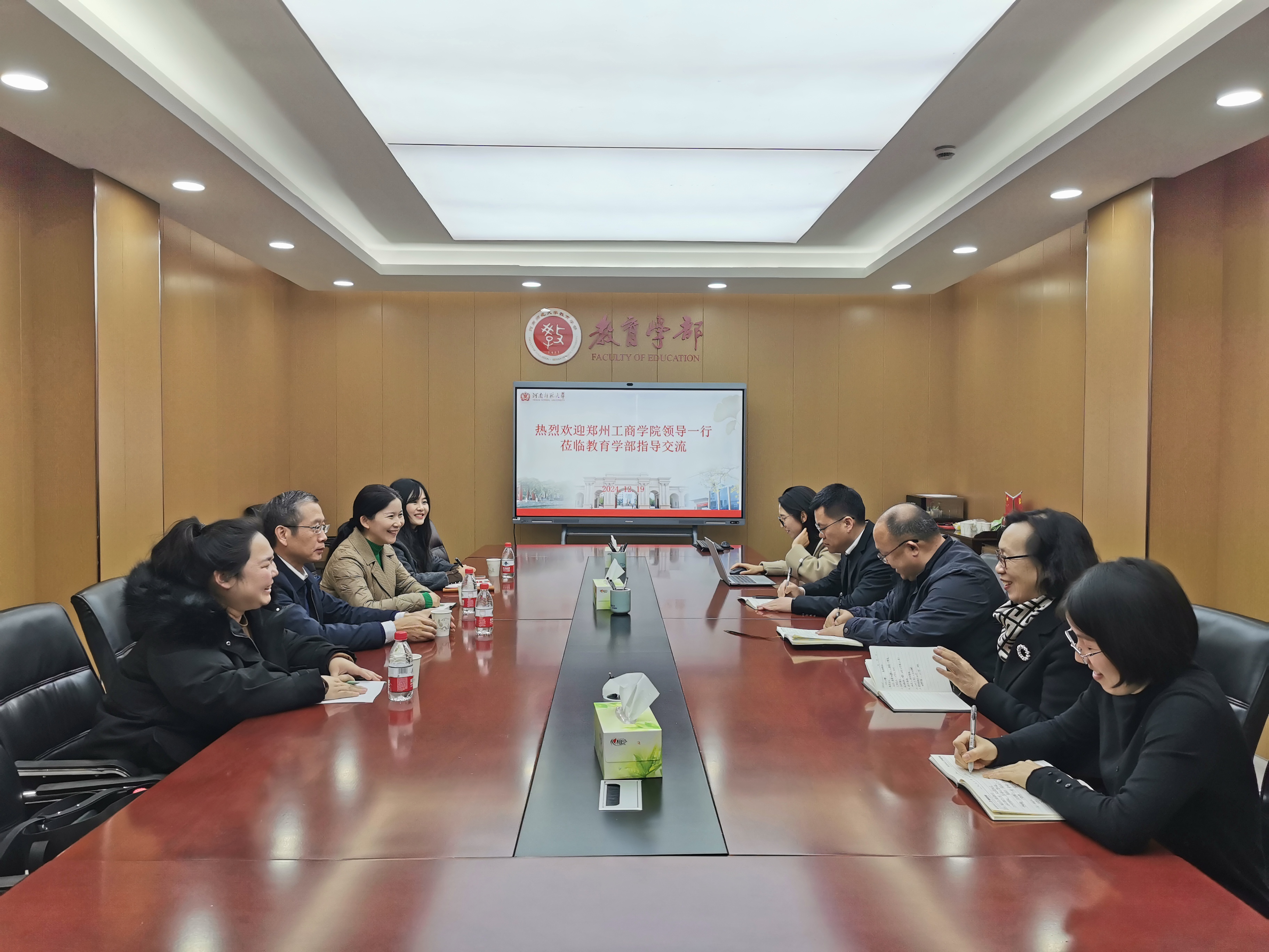 12月19日上午,郑州工商学院工会主席、副校长王萍一行4人到教育学部考察交流,座谈会在田家炳教育书院801会议室举行。河南师范大学校工会副主席任永利、教育学部党委书记陈勇、部长罗红艳、副部长卜彩丽、小学教育专业负责人等参加会议。