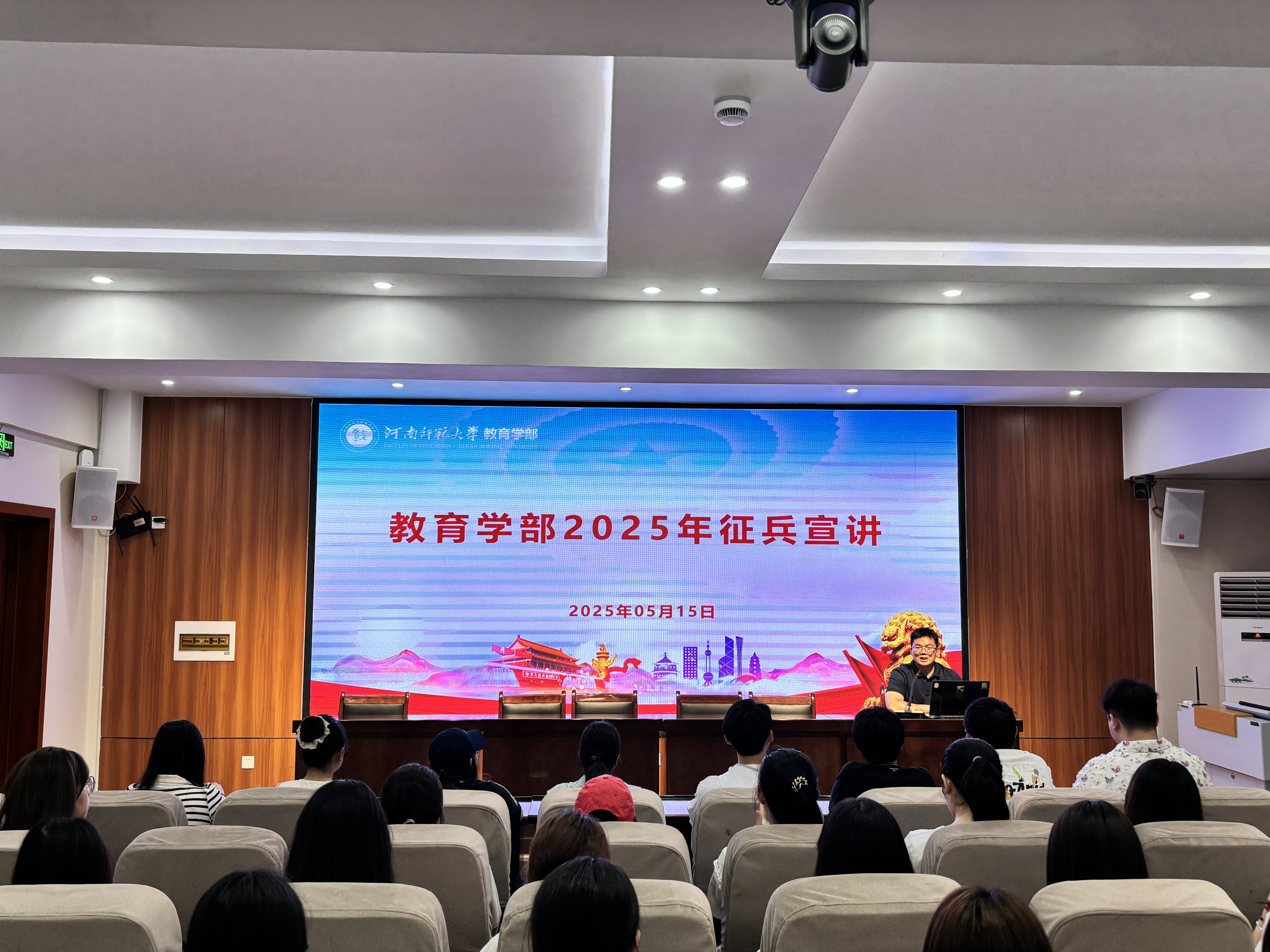 为深入贯彻落实习近平强军思想,帮助学生全面了解国家征兵政策,引导毕业生将个人理想融入强军事业,教育学部于5月15日在田家炳教育书院819会议室举行了2025年征兵宣讲会。教育学部征兵工作专员尹晓炯及学生代表80余人参加会议。