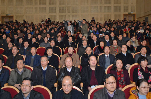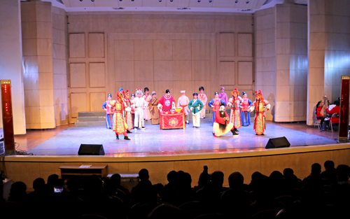1月24日上午,我校音乐厅座无虚席,全省高校优秀廉政戏剧巡演活动在这里举行。本次活动演出剧目为豫剧《芝麻官下江南》,由鹤壁市豫剧牛派艺术研究院院长、著名表演艺术家金不换主演。我校领导郑邦山、王键吉、王海旺、王新生、徐存拴、黑建敏、孙先科、陈广文、李雪山,校长助理朱华北、吴益民和新乡医学院、河南科技学院、新乡学院、河南机电高等专科学校的校领导及5所高校的机关部处室、院系主要负责人观看了演出。