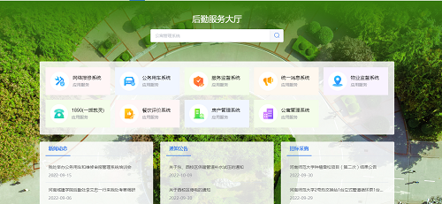 搭建“集中高效”的后勤服务大厅平台。先后开通网络报修系统、空调缴费系统、公寓管理系统、房产管理系统、校内送餐系统、公务用车系统、电动车充电系统、餐饮评价系统,努力贴近师生生活需要,让服务更加高效常效。