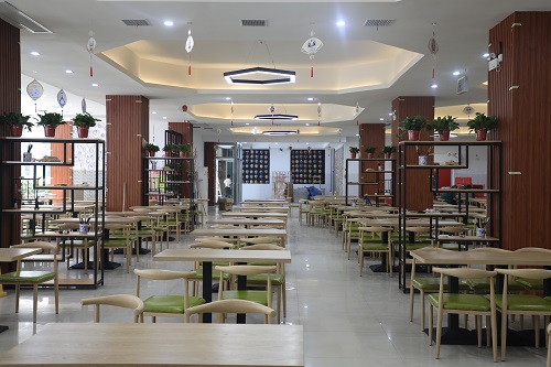 餐饮保障更有力。3座学生餐厅完成升级改造,重新装修、加装电梯、更换桌椅,就餐环境全面优化,餐品花色品种大幅增加;新建小吃一条街和1个培训餐厅,增加就餐面积1733平方米,丰富学生就餐选择;文轩阁餐厅两层完成装修改造,为教职工就餐提供方便;牵头组织驻新高校米、面、油等大宗食品原材料联采,学生餐厅建立“互联网+明厨亮灶”智慧监管系统,食品安全更放心。学生餐厅荣获“河南省高等学校标准化示范学生食堂”称号。