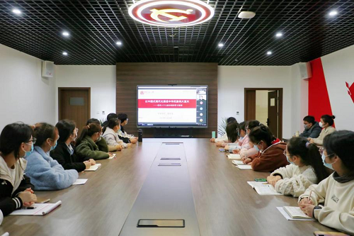 张尚字领学了党的二十大报告要点,他强调,党的二十大报告,总结了过去五年的工作和新时代十年的伟大变革,开辟了马克思主义中国化时代化新境界,明确了新时代新征程中国共产党的使命任务,擘画了未来五年及今后一个时期的发展蓝图,报告高瞻远瞩,催人奋进。他表示,习近平总书记的报告充分彰显了中国共产党人的自信自强;充分揭示了马克思主义中国化时代化的精髓要义;充分阐释了中国式现代化的丰富内涵;充分展示了党要将自我革命进行到底的坚强决心;充分表明了中国共产党战胜一切风险挑战的坚定信心;充分体现了党对科技创新和人才培养的重大战略安排;充分饱含着习近平总书记对青年一代的殷殷嘱托。张尚字对学院如何学习贯彻落实党的二十大精神提出三点要求,要在深学细悟上下功夫,确保学习到位;要在丰富形式上下功夫,确保宣传到位;要在真抓实干上下功夫,确保落实到位。