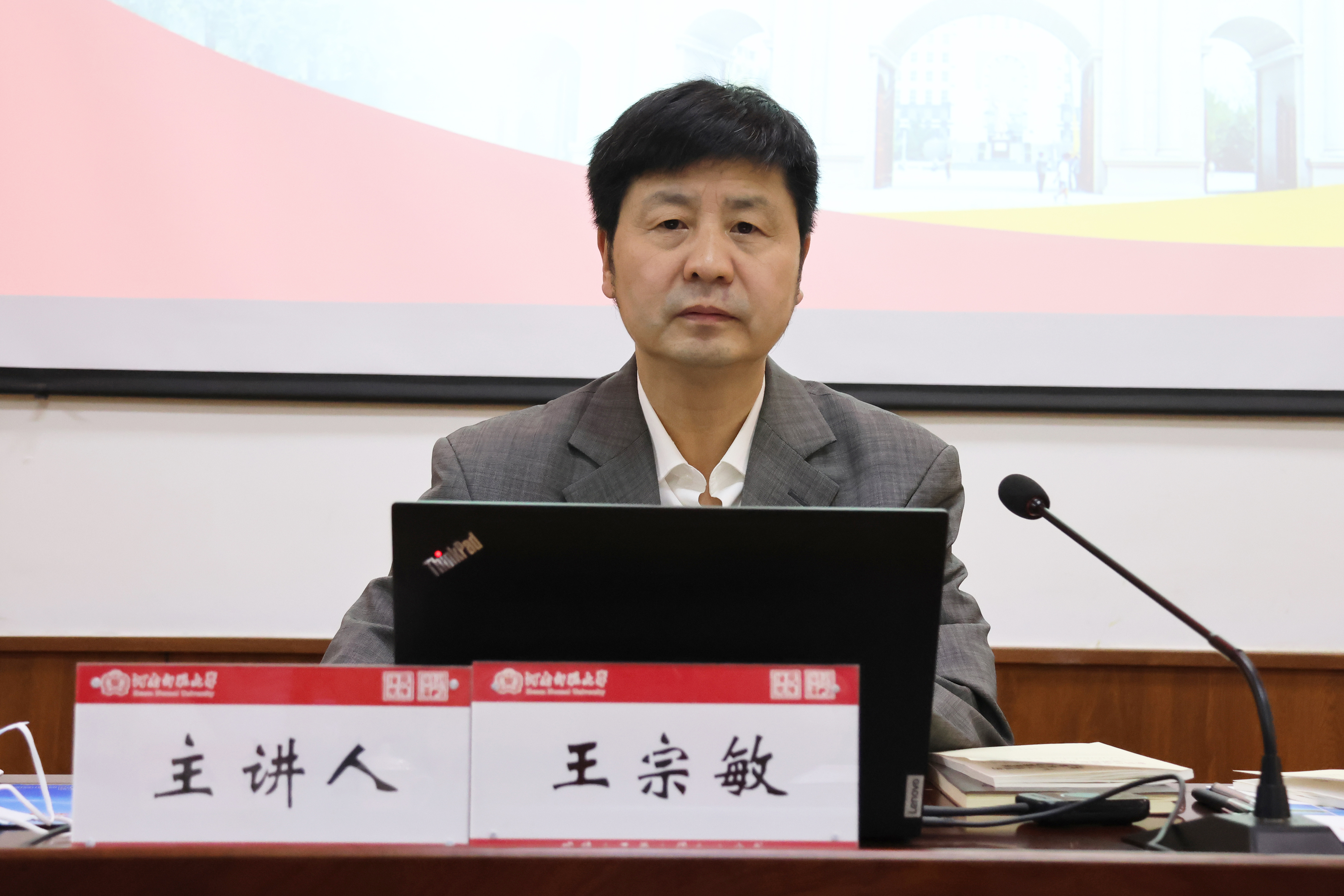 王宗敏以中国式现代化与“双一流”创建为主题,从“如何理解中国式现代化的深刻内涵;面对以中国式现代化全面推进中华民族伟大复兴的历史使命,高等教育何以强国;面对‘双一流’创建的重要机遇与挑战,河南师范大学何以自强”三个方面讲授专题党课。他指出,要从五个中国特色、九个本质要求和五个重大原则全面理解中国式现代化的深刻内涵。深刻把握党的二十大报告中对教育、科技、人才“三位一体”部署的战略深意,深刻把握世界高等教育中心、世界科学中心与世界强国之间的基本规律,深刻认识具有基础性、先导性、全局性地位的高等教育是支撑、推动和引领中国式现代化的重要力量。