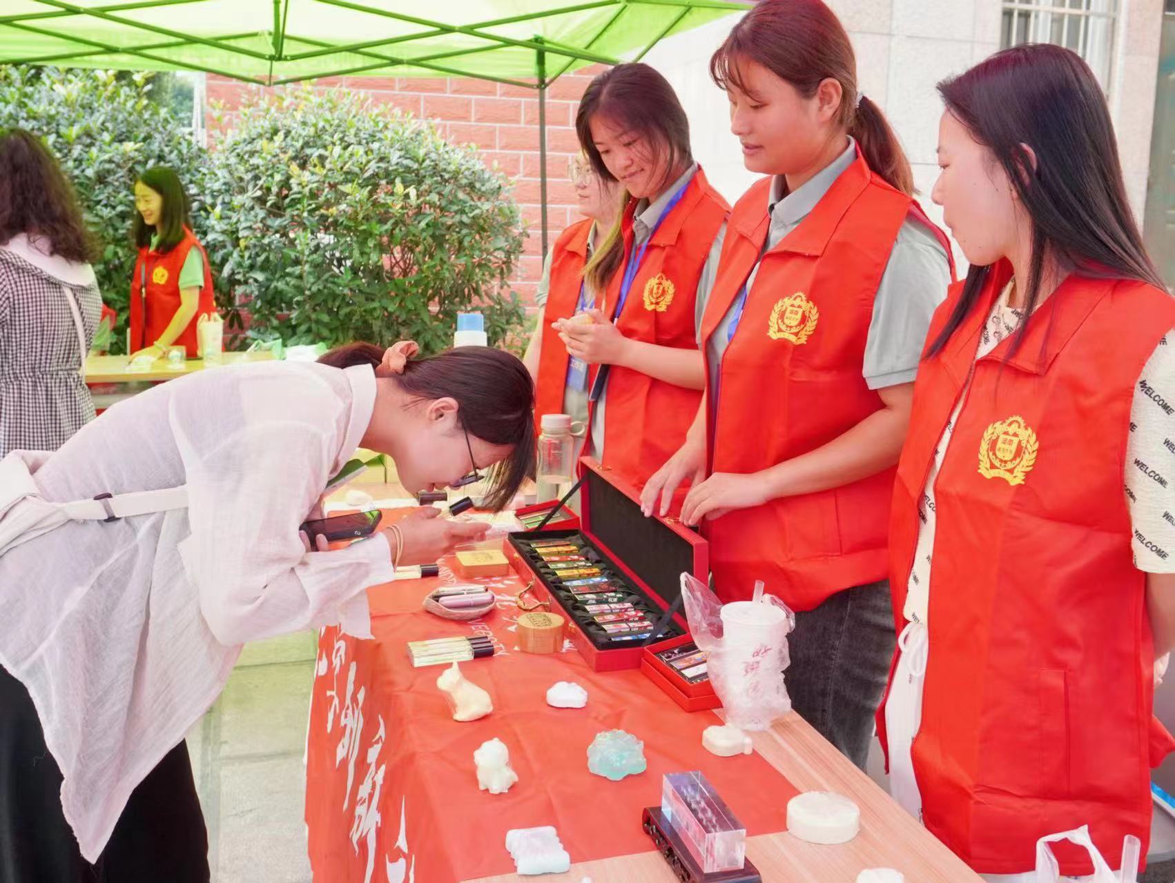“驴奶皂富含天然的EGF因子,对皮肤的滋润度极高,可以用来卸妆洗脸、去除衣物油渍。”2022级化学化工学院王田田滔滔不绝地介绍道。为帮助新生了解学院特色,化学创新社学生利用专业知识,自制了手工皂、雕花口红、香水等迎新特色手工艺品。“我们希望通过介绍展品的实际用处,使新生快速了解所在学院,激发他们的求知欲,为度过大学四年的学习生活打下良好基础。”王田田说道。此番举动吸引了许多新生和家长的驻足观看,现场设置的展示台和互动区成了新生的热门“打卡地”。