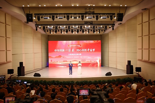 10月27日,由中共河南省委教育工委、省教育厅主办,我校承办的全省高校大学生“中华民族一家亲,同心共筑中国梦”主题演讲比赛决赛在帕瓦罗蒂音乐厅举行。省委教育工委专职委员何秀敏,省委教育工委二级巡视员、组干(统战)处处长冯轩友,省委统战部党外知识分子工作处一级调研员邓清,省委教育工委组干(统战)处三级调研员高峰,校党委副书记张尚字,校党委副书记、工会主席马治军莅临比赛现场。省内多位专家担任评委。全省38所高校相关领导,我校党政办公室、党委组织部、党委宣传部、党委统战部和马克思主义学院的相关负责人,师生代表近500人共同观看比赛。