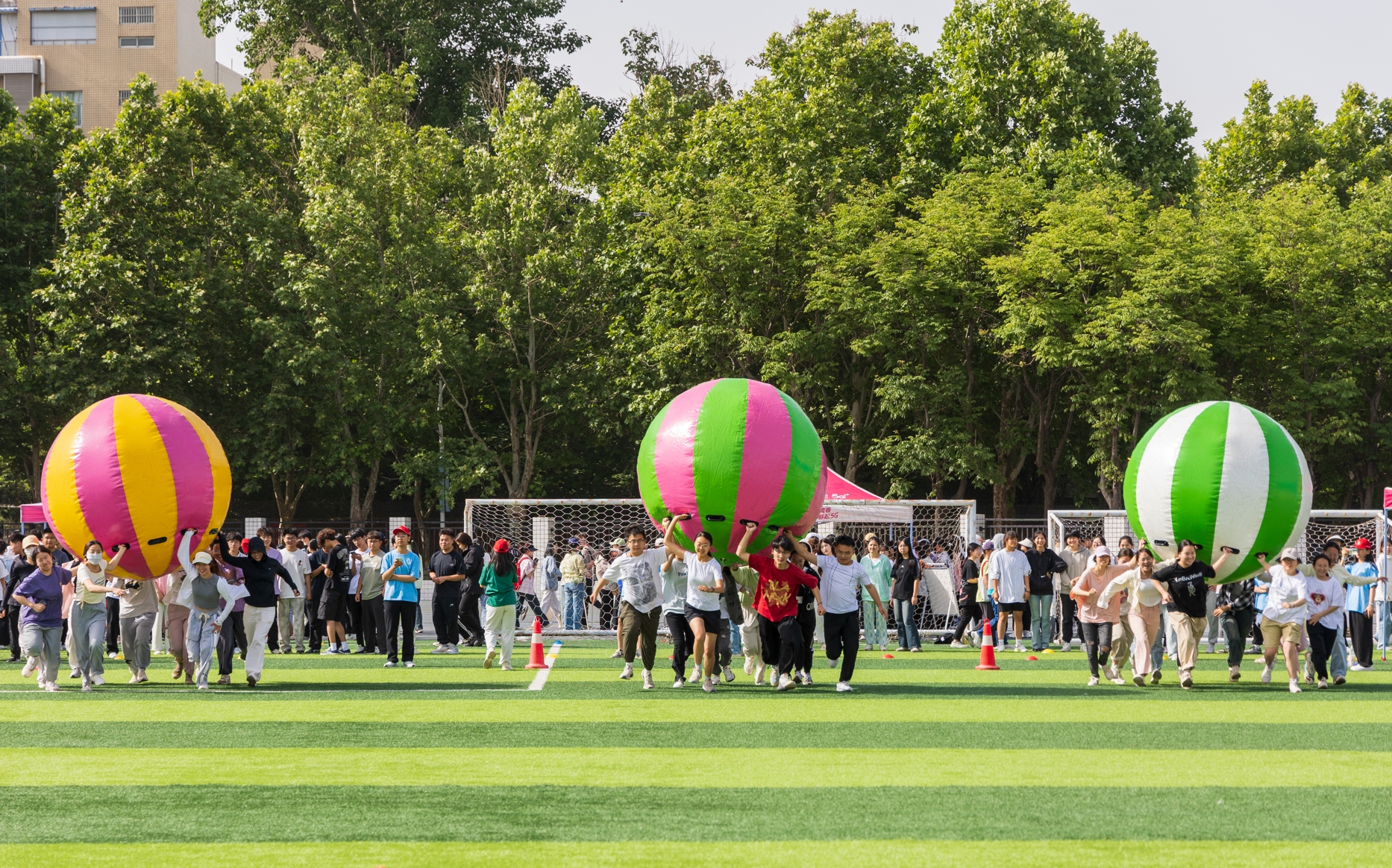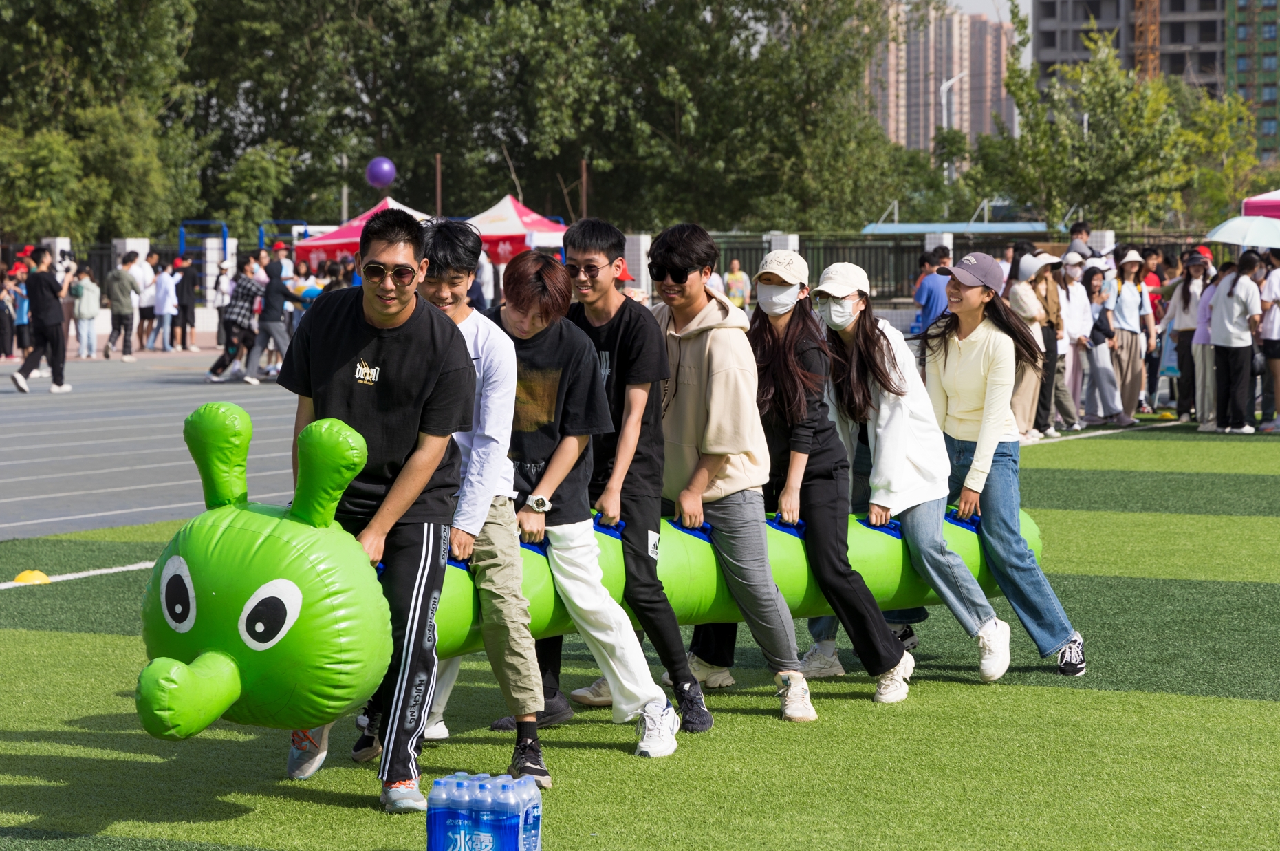 仪式结束后,与会师生一同参加了“润泽心灵 温暖同行”心理素质拓展活动。活动包括鸿运彩球、众星捧月、不倒森林、能量传输等团体、个体项目16个,学生以宿舍为单位参加活动,相互配合,共同协作,以增加宿舍凝聚力和向心力,提升个人心理素质。