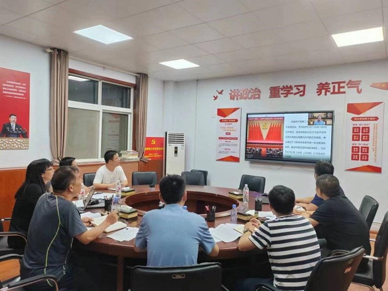 7月24日下午,继续教育学院党总支召开理论学习中心组(扩大)会议,专题学习中国共产党第二十届中央委员会第三次全体会议精神。学院领导班子成员、党总支委员参加会议。会议由党总支书记张喜平主持。