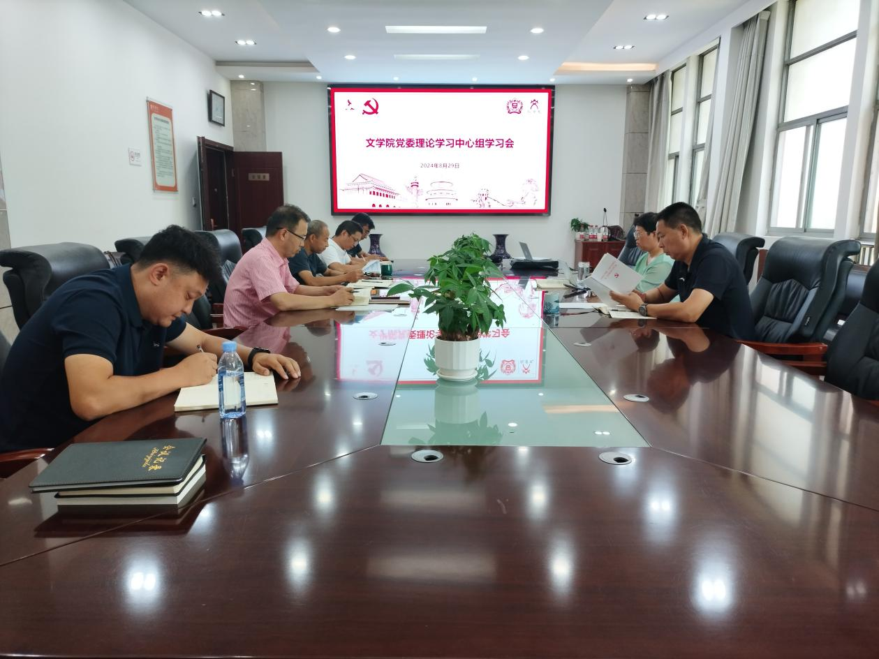 8月29日上午,文学院在崇文楼二楼会议室召开党委理论学习中心组学习会议,专题学习党的二十届三中全会精神,学院党政负责人、党委委员参加学习,会议由院党委书记孙昌松主持。